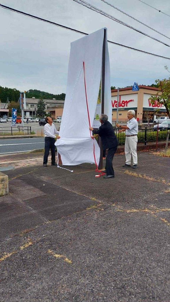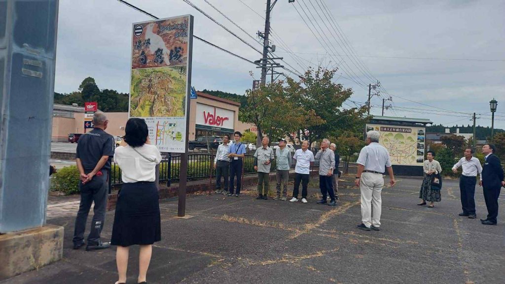 白鷹城案内図を大正村駐車場に設置、除幕式を行う